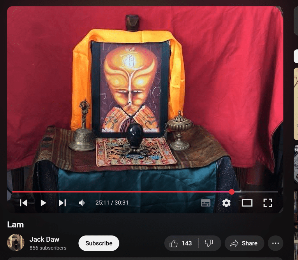 Clearly, this is not a space where Tibetan Studies expertise is especially wanted, needed, or relevant. Grant has it all covered by himself, and necessarily must follow his own weird and spooky logics. Overall, I think what I find most striking about LAM in all its iterations is just that, it’s incredible and audacious generativity. A small drawing Crowley did which he didn’t comment on much in his life, has managed to give birth to an entire new religious movement, however modest, has inspired viral memes and videos, band merch and a hundred frustrated back-and-forths on Thelemic Reddit. Ambivalence around Crowley’s picture and letters allows them to remain unsited and malleable. Random occurrences and errors, ‘simple’ explanations open up into grander vistas, like when mystically-inclined rabbis write esoteric treatises on why the Torah begins with the second letter of the Hebrew alphabet and NOT THE FIRST, or vigorously and beautifully defend undeniable typos in sacred texts. LAM is nothing if not an unfolding Path. I suppose what remains to be seen is how much potential or need there is for Tibetan Studies, Tibetans, or Tibetan Buddhists to speak alongside or back to occultists’ interpretations.
